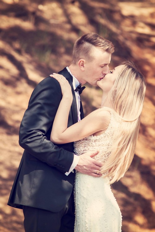 Suknia w kolorze Ivory, odkryte plecy. Nie zsuwa się z ramion. Z przodu jest cielista siatka, praktycznie niewidoczna Suknia ma wszyte cieliste miseczki z lekkim push-upem. Cała suknia wyszyta koralikami. Założona na ślub+ sesja w plenerze. Po praniu, w stanie praktycznie nienaruszonym. Goście byli zachwyceni suknią, jest przepiękna, oryginalna i seksowna.