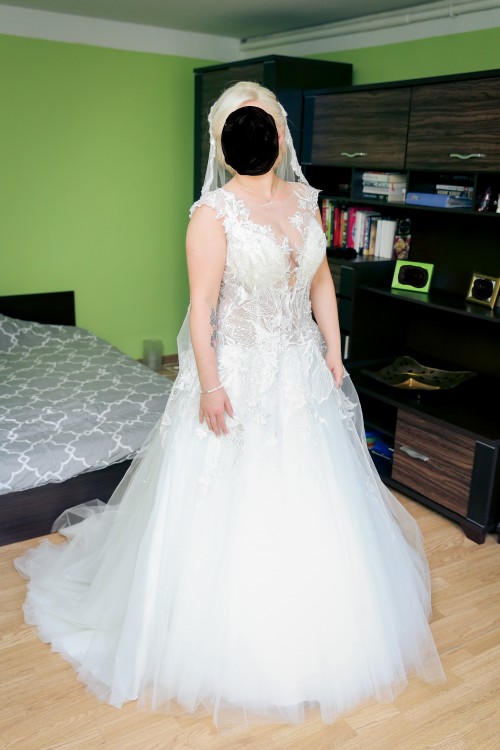 Mam do sprzedania niepowtarzalną suknie ślubną, w kolorze ecrui. Suknia z kolekcji Agora 17-34 2017. Góra koronkowa zapinana na sówak ,tiulowy (miękki) dół obszyty koronką,góra jak i pierwsza warstw tiulu mieni się błyszczącymi drobinkami. Jest lekka i nie krępuje ruchów. Wzrost 165+10cm obcas. Rozmiar 40-42 , można ją spokojnie przerobić. Cena do lekkiej negocjacji.