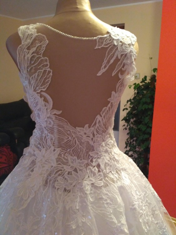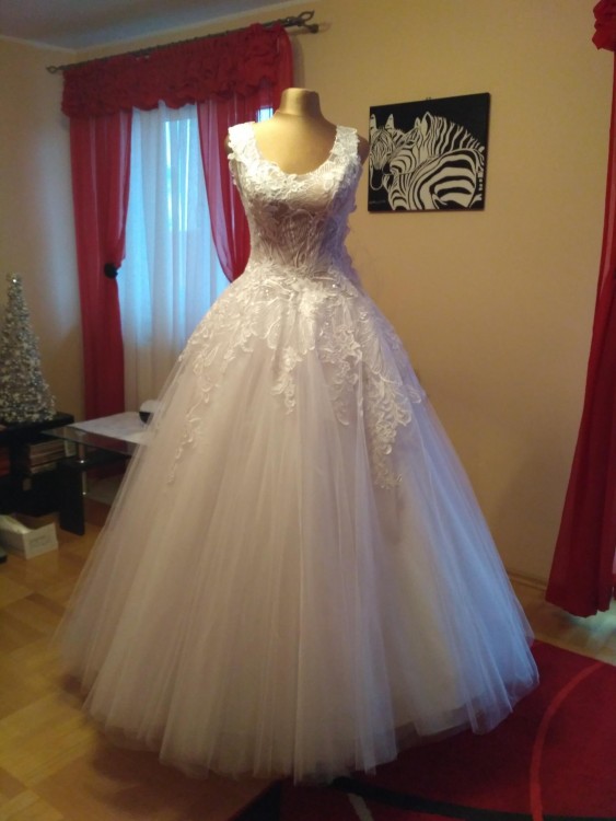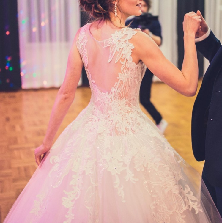 Witam! Mam do sprzedania suknię ślubną w kolorze śnieżnobiałym firmy Agora. Suknia pochodzi z kolekcji 2017, uszyta jest na wzrost 174 cm + 8 cm obcas, prezentuje się niezwykle elegancko, a wbudowane fiszbiny niesamowicie podkreślają talię. Suknia wysadzana jest kryształkami Swarovskiego, które połyskując stwarzają spektakularne wrażenie. Posiada delikatny tren, który dodaje jej wykwintności, jednocześnie nie przeszkadzając w tańcu. Serdecznie zapraszam do kontaktu i przymiarki sukni w Krakowie.