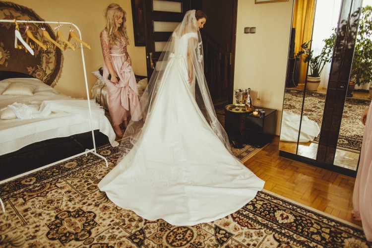 Sprzedam suknię ślubną hiszpańskiej marki Aire Barcelona zakupioną w salonie Carmen w Warszawie. Rozmiar 36/38, długość na wzrost 168 + 8,5 cm obcas. Suknia posiada bardzo efektowny tren zapinany na haftki. Po ceremonii można go całkowicie odpiąć, dzięki czemu suknia jest bardzo lekka i wygodna. Góra: koronka, dół oraz tren: mikado. Suknia założona była jedynie na ceremonię i obiad.