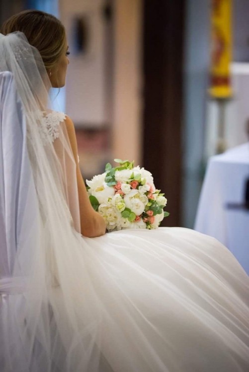 Do sukni w komplecie dołączam halkę, pasek (odpinany) oraz długi welon.