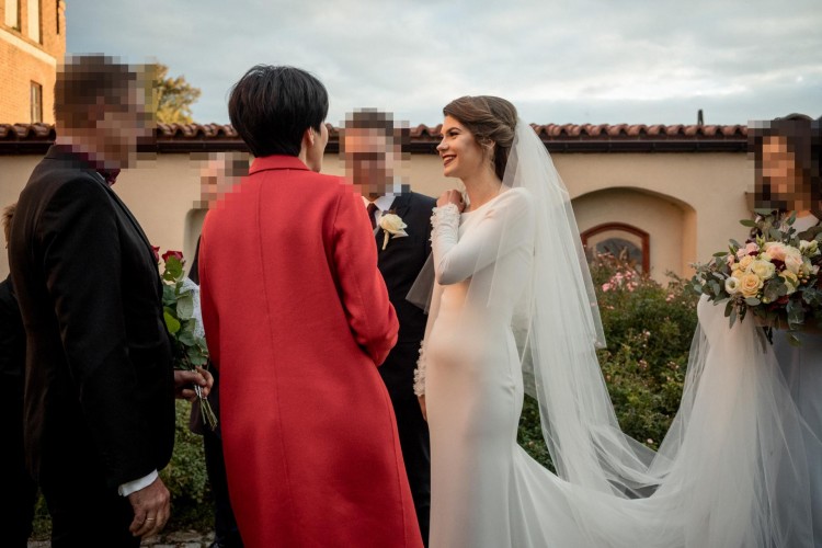 - narzutka na suknię, w kolorze sukni, szyta na zamówienie, idealna na życzenia poślubne, gdy te odbywają się na zewnątrz (wartość: 600 PLN)