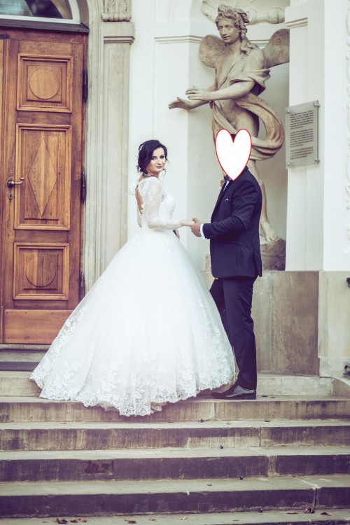 Mam na sprzedaż piękną włoską suknię ślubną projektantki Moniki Loretti model Allegria z 2017 roku. Rozmiar sukni jest to 36-38. Była szyta na miarę na wzrost 162 cm plus 10 cm obcas. Biust ok 90 cm talia 73cm i biodra ok 90 cm. Suknia jest zdobiona koronką, a także posiada cienkie długie rękawy z koronki, z tyłu wycięcie na plecy. W zestawie sprzedaję suknię ślubną,opaskę na włosy, która pięknie się mieni kryształkami i perełkami, długi welon sięgający do kostek oraz koło (składające się z 4 obręczy) dopasowane do długości i objętości sukni.Suknia posiada piękny dłuższy tren, który zachwycił wszystkich gości. Suknia robi piorunujące wrażenie, jest to suknia luksusowa. Cena za komplet=suknia ślubna+opaska+welon+koło 3000zł. Cena salonowa za komplet 7000 zł. Naprawdę polecam! Odbiór tylko osobisty (okolice Grodzisk Mazowiecki, Milanówek lub Mszczonów) ze względu na wartość sukni, a także przyszła Panna Młoda musi dobrze czuć się w swojej wymarzonej sukni:)