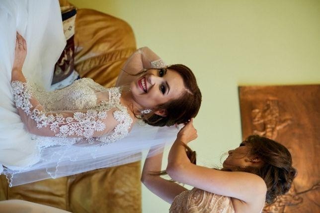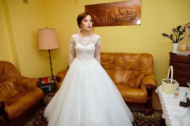 W komplecie dodaje toczek i welon widoczne na zdjęciach