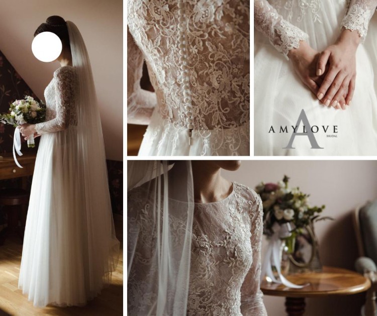 Sprzedam subtelną Amy Love Bridal. Suknia bardzo wygodna, nie krępuje ruchów, czułam się w niej niezwykle swobodnie. Cała góra jest koronkowa, dół tiulowy (w tańcu układa się cudnie).