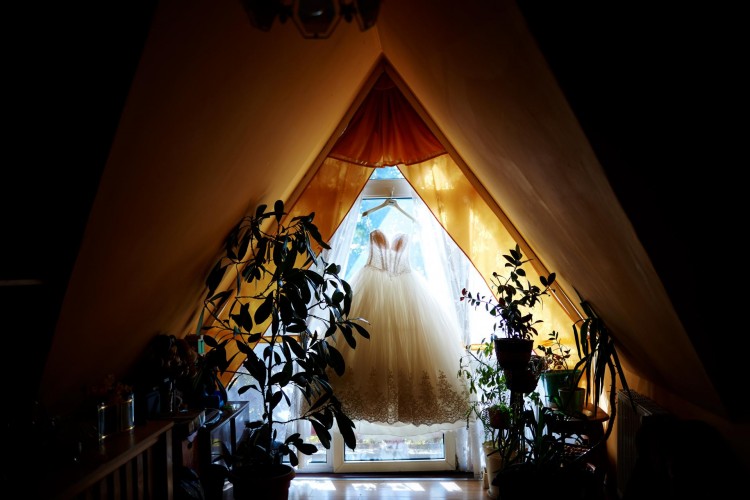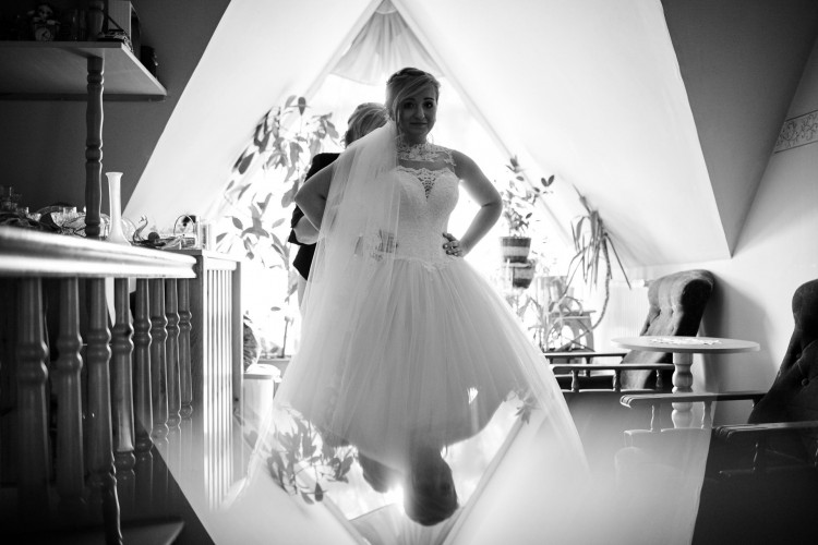 Suknia ma wszyte koło, co sprawia, że jest bardzo wygodna i spokojnie można w niej stawiać kroki.