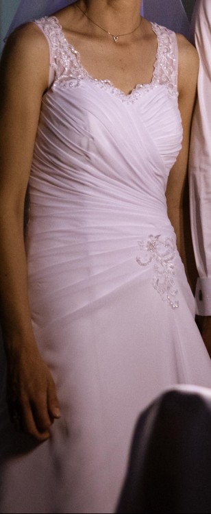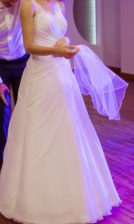 Piękna, klasyczna suknia ślubna. Bardzo wygodna, cudownie podkreślająca talię. Delikatny muślin i koronki tworzą idealną całość, bez ekstrawagancji. Dla osób ceniących delikatny, skromny, ale elegancki styl oraz wygodę. Taka suknia bez wątpienia pozwala poczuć się w dniu ślubu absolutnie wyjątkowo!