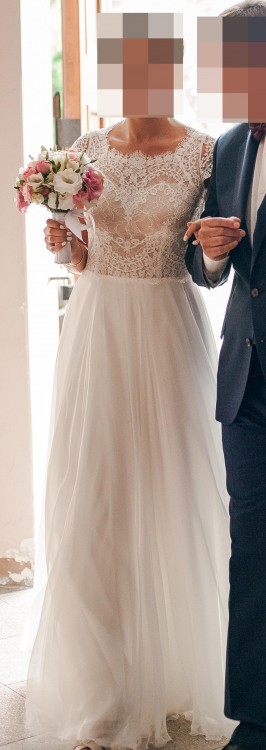 Suknia jest niezwykle subtelna, romantyczna i dziewczęca. Skromna, a jednocześnie niezwykle gustowna. Przepięknie prezentuje się na żywo, jak i na zdjęciach.