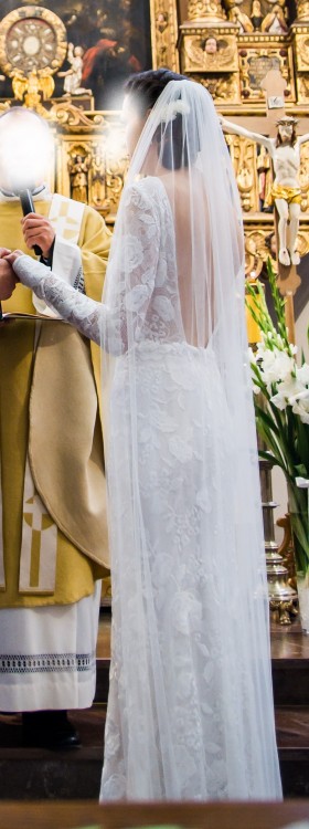 Mogę dorzucić długi do ziemi welon z małym uszczerbkiem, możliwy do przeróbek.