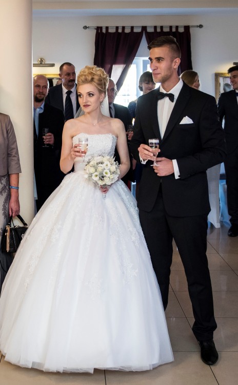 mam do sprzedania przepiękną suknie ślubną firmy Annais Bridal by Anna Ismenska. Kupiona w Szczecinie w salonie sukien ślubnych za ponad 4 tys. Jest to suknia typu ,, księżniczka" zdobiona ręcznie, wyszywaną koronką i kamieniami Swarovskiego, posiada również tren który można później podpiąć na dwa sposoby. Suknie idealnie można dopasować do różnego rozmiaru, ponieważ posiada sznurowany gorset, także zaletą jest to, że wyszczupla talię. Do sukni jest również halka z dużym kołem oraz koronkowe bolerko. Można ją nosić z kołem jak i bez kola zależy jaki efekt chce się uzyskać :)Suknia szyta na wymiar: wzrost 158 cm + 12 cm obcas, Serdecznie polecam, suknia zapiera dech w piersiach i jest bardzo wygodna jak na taki typ sukni ;) Jest wyczyszczona w profesjonalniej pralni chemicznej.