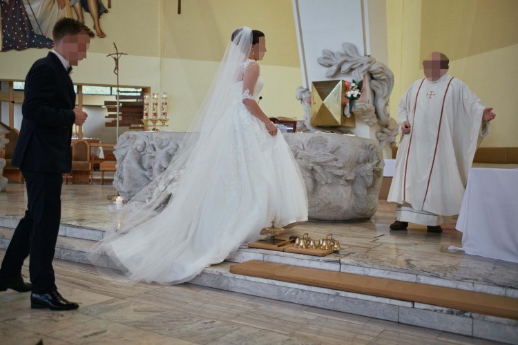 Suknia nie została zniszczona, jest w idealnym stanie. W cenie również profesjonalne pranie.