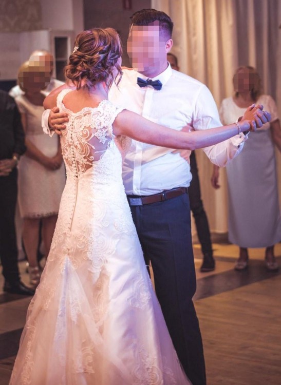 Sprzedam piękną, koronkową suknię ślubną zakupioną w salonie sukien ślubnych we Wrocławiu z kolekcji Annais Bridal. Suknia w kształcie litery A, dopasowana pięknie podkreśla figurę, rozmiar 36. Posiada koło oraz podpinany tren. Góra sukni posiada usztywniane miseczki. Wygodna, bardzo ładnie się układa podczas chodzenia oraz w tańcu. Suknia na wzrost 170 cm + 7-9 cm na obcas. Suknia po praniu chemicznym. Możliwość przymiarki w Kamieńcu Ząbkowickim ( woj. dolnośląskie). Po więcej informacji zapraszam na priv:)