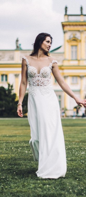 Suknia została zakupiona w warszawskim salonie La Mariee i pochodzi z włoskiej kolekcji Ariamo (model Denica).