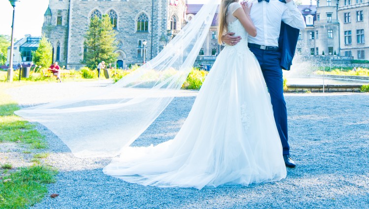 Posiada 5 warstw tiulu z długim nieodpinanym trenem z możliwością założenia go na palec i ewentualnie zrobienia na dopięcie na haftki.