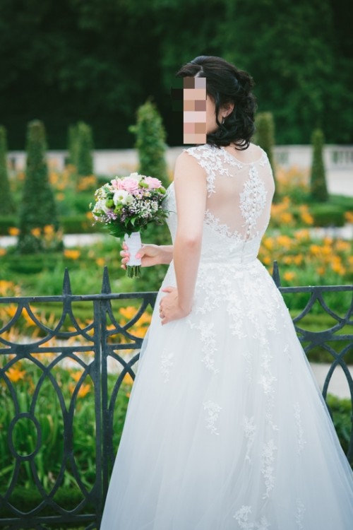 Suknia jest absolutnym hitem od kilku sezonów. Ma odkryte plecy, koronkę, a także zwiewny tiul! Suknia prezentuje się cudownie zarówno na zdjęciach jak i na żywo. Doskonale układa się w tańcu oraz nie ogranicza ruchów, a także jest lekka i wspaniale wygląda podczas obrotów. Polecam gorąco!