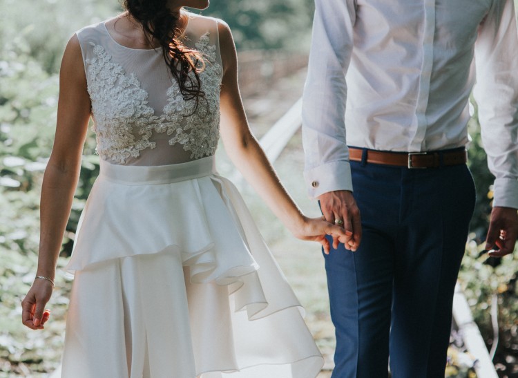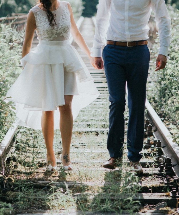 Suknię wyróżnia odpinana spódnica z długim trenem, po odpięciu sukienka jest krótka, asymetryczna co widać na zdjęciach. Takie rozwiązanie sprawiło, że jest niesamowicie wygodna, a po długich godzinach tańców doskonale prezentuje się również do płaskich butów.