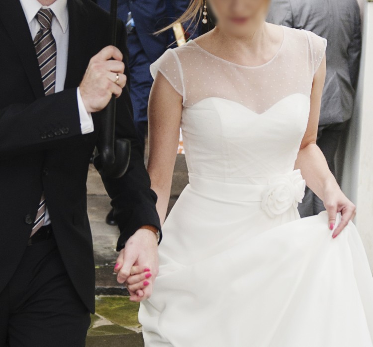 Sprzedam śliczną muślinową suknię ślubną w rozmiarze 34/36 zakupioną w salonie Fasson Dorota Wróbel.