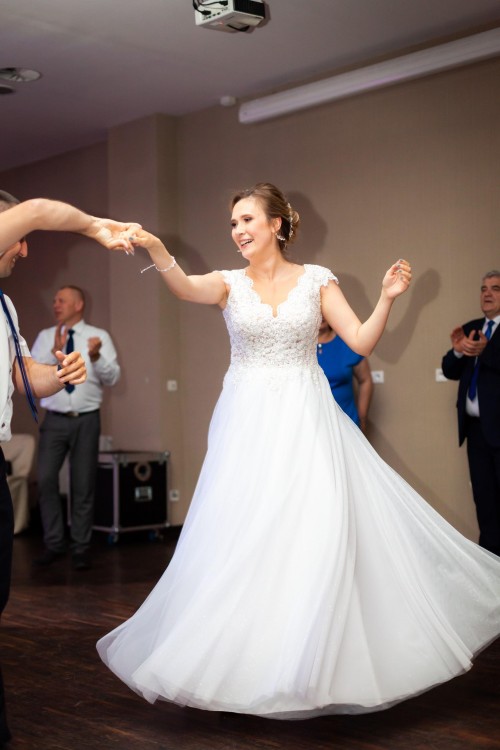 Suknia bardzo wygodna i lekka. Pięknie układa się i na siedząco i w tańcu.