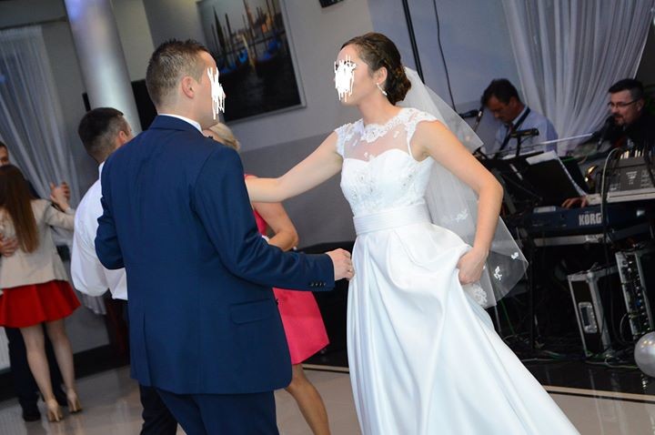 Suknia ślubna biała z koronki, satyny, koralików i kamyczków swarovsky. Stan jak nowa, czyszczona chemicznie. Założona na ślub i wesele oraz sesje zdjęciową. Możliwość przeróbek (skrócanie, wydłużanie, poszerzanie, zwężanie) przez krawcową, która szyła suknie. Do obejrzenia w Rzeszowie ale również okolice Jasła, Dębicy, Tarnowa.