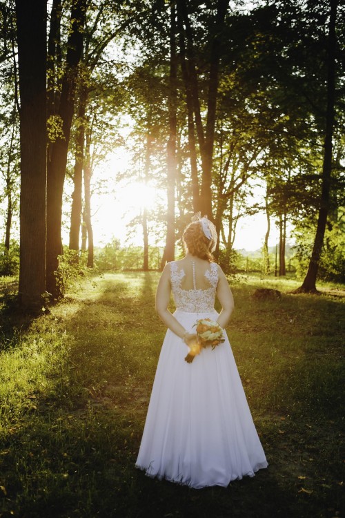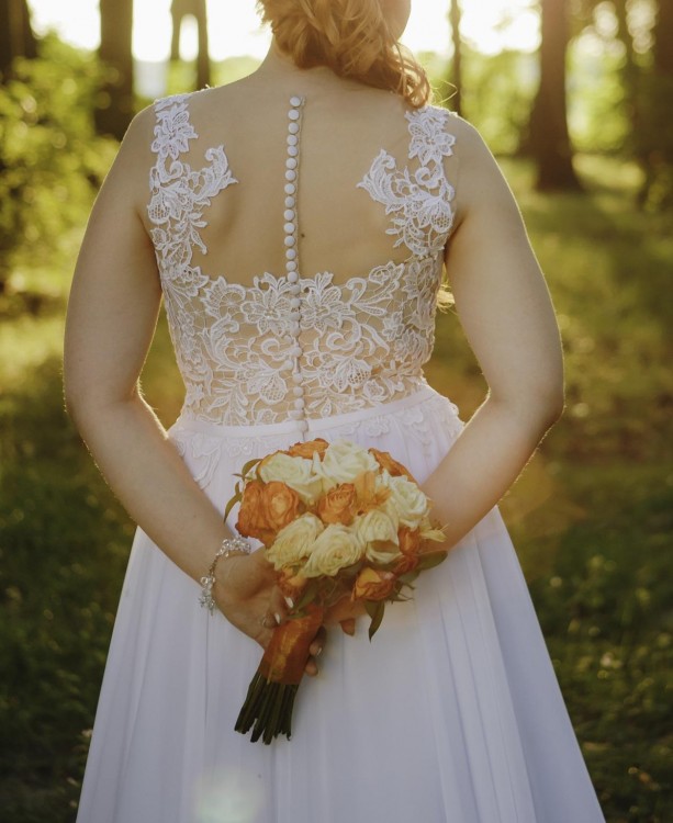 Do sprzedania suknia ślubna biała, muślinowa, szyta na miarę,