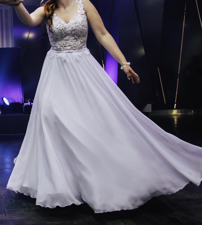 komfortowa w noszeniu, nie jest ciężka, ładnie układająca się w tańcu. suknia ma wszyte koło, które ułatwia poruszanie się, jednak można je wyciągnąć(wtedy suknia robi się trochę dłuższa)