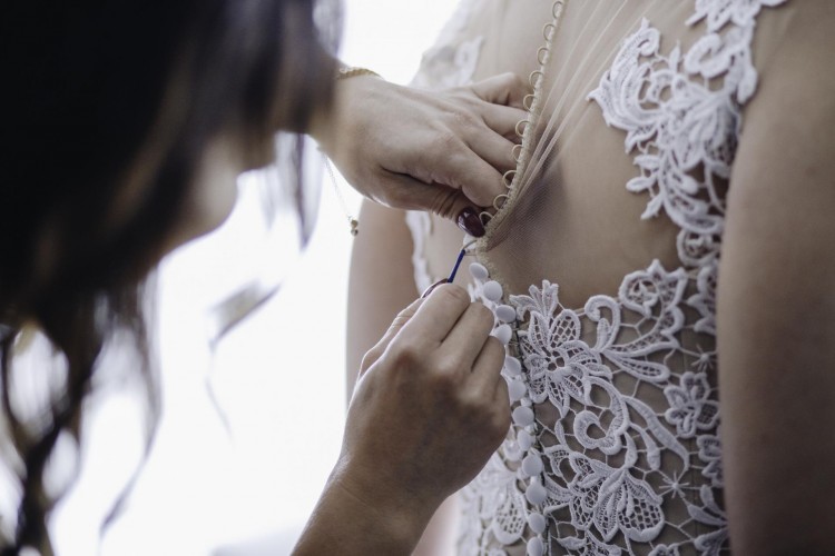 góra: koronka przyszyta na cielistej siateczce(na jasnej karnacji praktycznie niewidoczna) z tyłu zapinana na suwak i rząd guziczków.