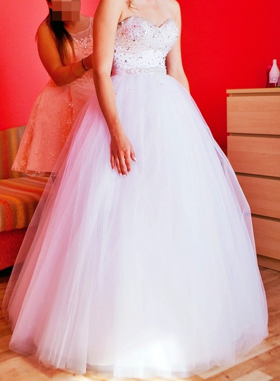 - przepięknie zdobiony gorset, 'diamenciki' przechodzą na dół sukni