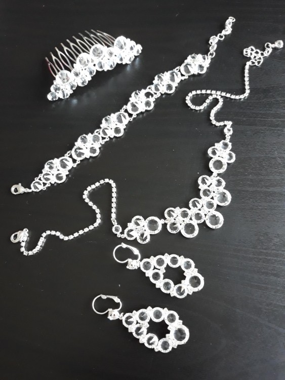 W cenę sukni dorzucam: Biżuterię wraz z grzebykiem do upięcia włosów –wartość zestawu to 250 zł oraz buty ROZ. 37 które kupiłam „ w razie czegoś” -nowe.