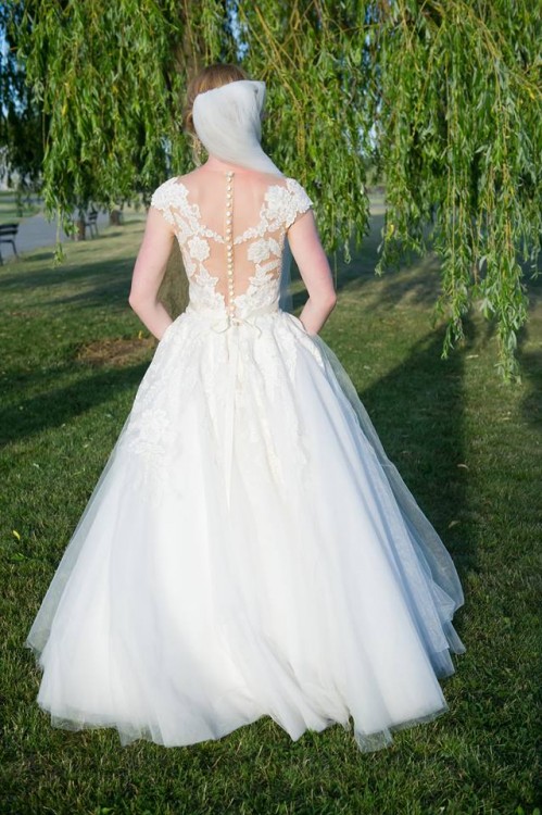 Suknia jest bardzo efektowna, pięknie układa się w tańcu, zachwyciła wszystkich gości. Atutem sukni jest również to, że materiał z którego została wykonana jest bardzo trwały, pomimo delikatnej siateczki nie została uszkodzona podczas wesela.