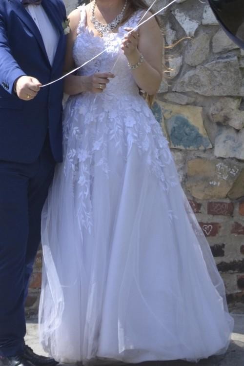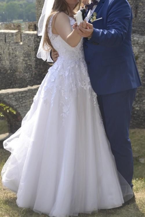 Suknia była założona raz na ślub i raz na sesję. Jest wyprana w salonie ślubnym i wyprasowana.