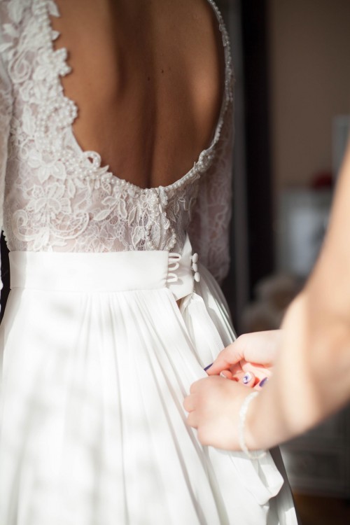 Suknia składa się z dwóch części- body oraz spódnicy.