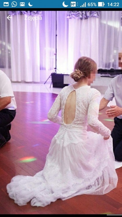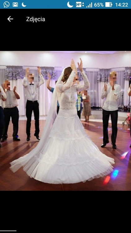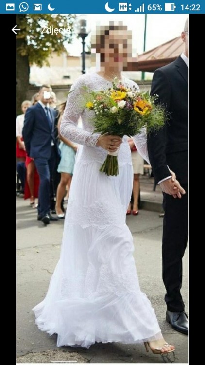 Niepowtarzalna suknia slubna w stylu boho, dlugi rekaw, odkryte plecy. Dlugi welon tiulowy gratis.