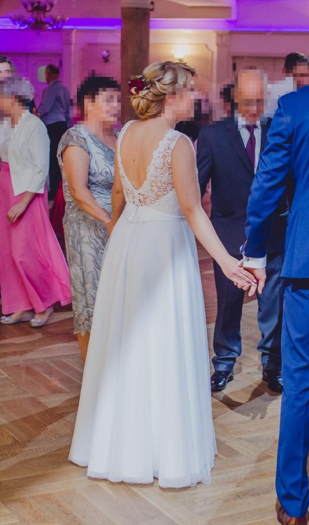 Suknia ślubna boho bez pleców biała 38 M + welon i bolerko Tychy - image 2