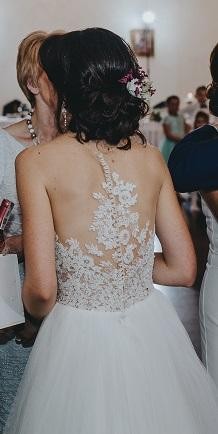 Suknia jest bardzo wygodna, lekka i zwiewna. Pięknie układa się w tańcu. Zrobiła duże wrażenia na mężu i gościach.