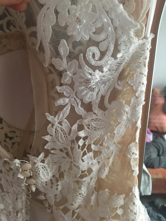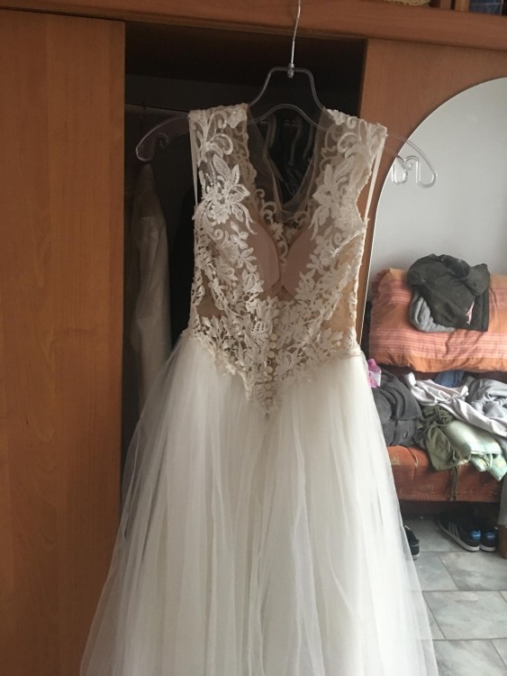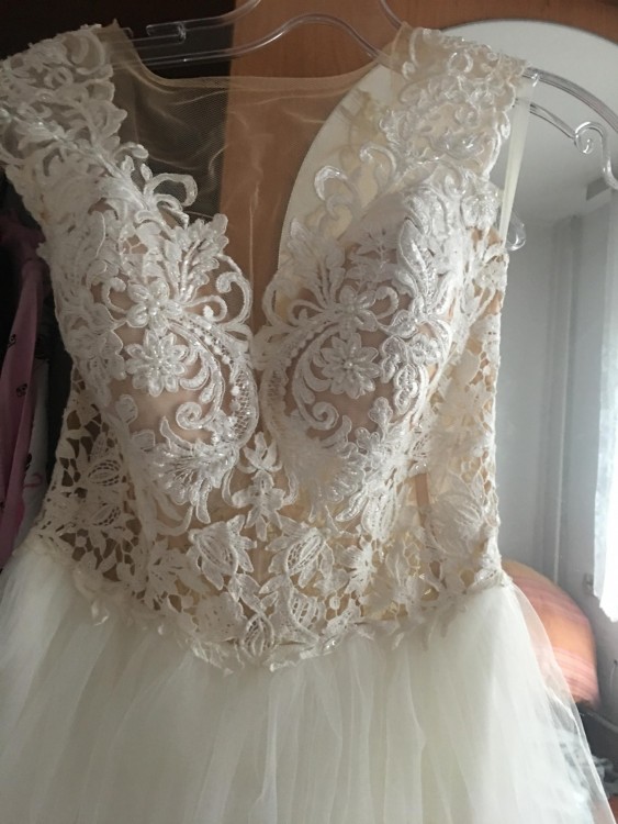 Stan sukni ogólnie uważam za bardzo dobry posiada wady które są nie widoczne jednak pasowało by je naprawić mn. Dziura w jednej warstwie tiulu, pęknięte niektóre gumeczki na guziki, jednak są one podwójne i się trzymają. Suknie oddam do czyszczenia chyba ze ktoś będzie wolał zrobić to na własna rękę to dla mnie będzie to wygodniejsze wtedy opuszczę z ceny.