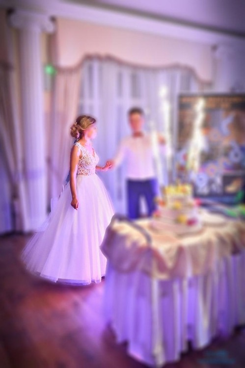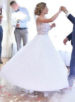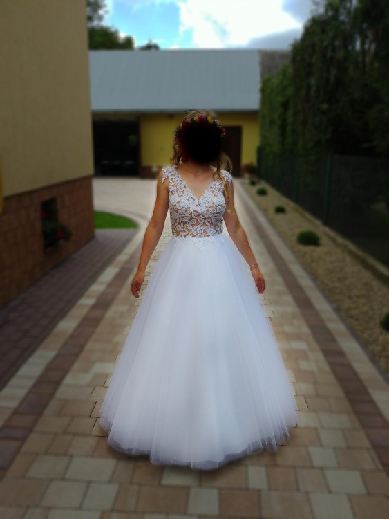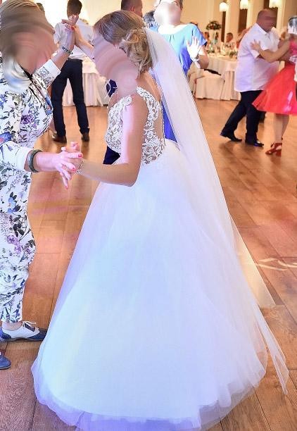Suknia na dole jest delikatnie uszkodzona, dlatego też cena jest do negocjacji.