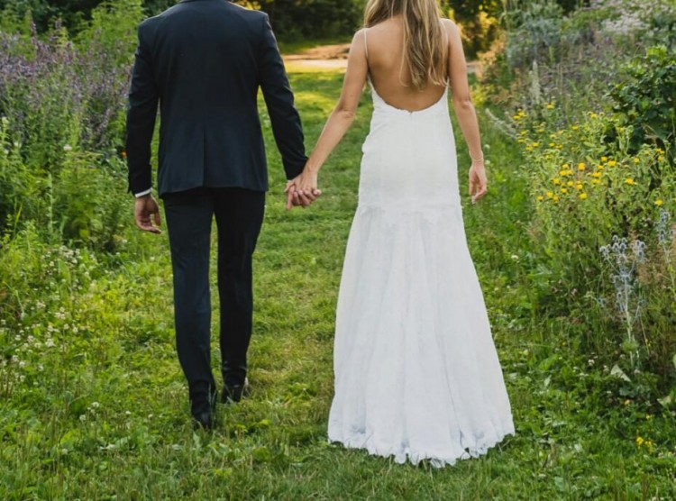 Kwiatowa aplikacja naturalnej koronki oraz odsłonięte plecy nadają uroku. Dodatkowo dołączam welon w tym samym kolorze dł. 2,5 m.
