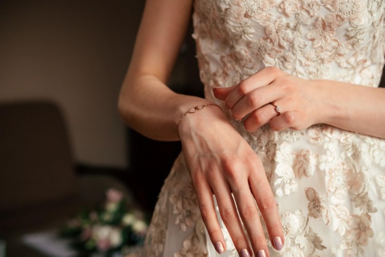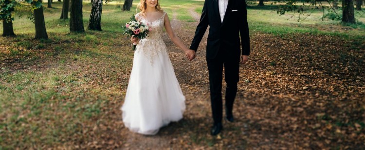 Sukienka zamówiona w rozmiarze 34 i dopasowana pod wzrost 162 cm + 8 cm obcas.