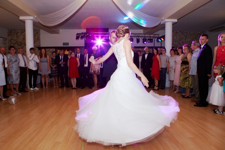 Suknia ślubna z kolekcji 2017r. kupiona w salonie sukien ślubnych Joanna w Dąbrowie Górniczej. Góra z delikatnego niedrażniącego skóry materiału. Tył zapinany na guziczki. Wszyty pasek z cyrkoniami. Suknia szyta na 162cm +8cm obcas. Suknia posiada koło, dzięki czemu nie sprawia problemu w tańcu, nie plącze się między nogami.