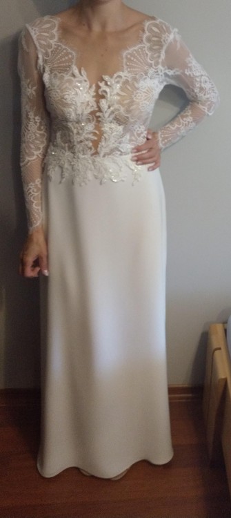 Suknia ślubna w rozm. 34/36. Na wzrost 164 cm + 7,5 obcas, kolor ivory. Model Diana Soho.