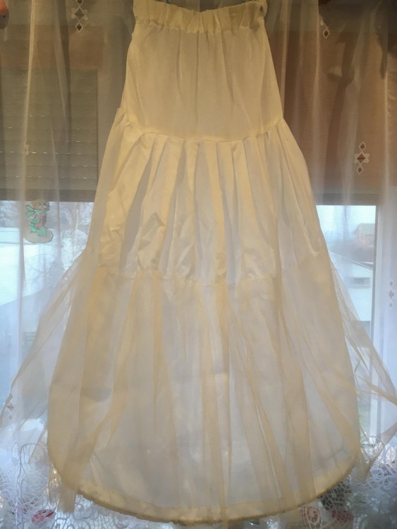 Suknia była szyta na miarę w salonie Visual Chris w Poznaniu w 2018 roku, pasuje na rozmiar 34/36 i wzrost ok. 155 cm + ok. 9 cm obcas (możliwość skrócenia). Sukienka z kolekcji Collin model 625 typ princess. Górę, jak i dół sukni zdobi koronka francuska tył jest zapinany na ozdobne guziczki w komplecie halka z usztywnieniem.