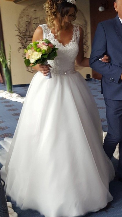 Długa spódnica z trenem 2,30 m , krótka uszyta na długość 58cm od pasa. Suknia szyta na wzrost 175 plus 11cm szpilki ,na kole,wszyta miseczka b/c . Założona na kilka godzin. Stan idealny bez zaciągnięć i uszkodzeń. Osoby zainteresowane proszę o kontakt telefoniczny . Możliwość obejrzenia w Sosnowcu,Wieliczce lub Kamiennicy (woj.Małopolskie)Suknia wyczyszczona w pralni.kolor śmietanka.