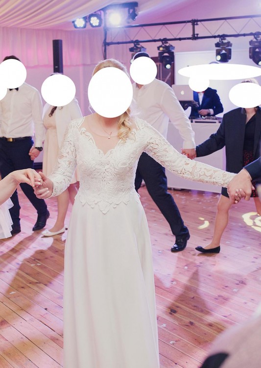Suknia ślubna długi rękaw koronka gipiura 40 ecru