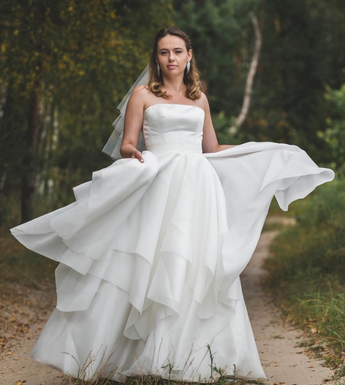 Suknia ślubna w kolorze ekri, która jest tak zwiewna i delikatna, że porusza się przy każdym ruchu. Ten model spotka się z uznaniem wszystkich Pań, które w tym dniu stawiają na wygodę.