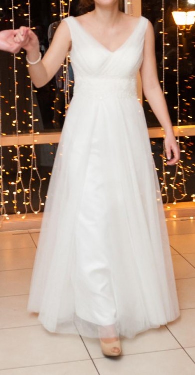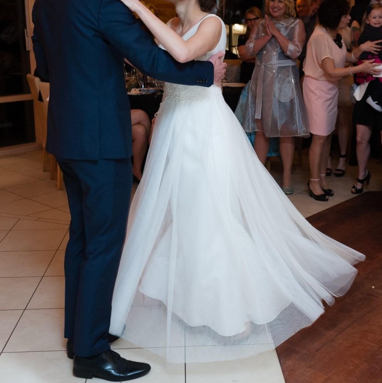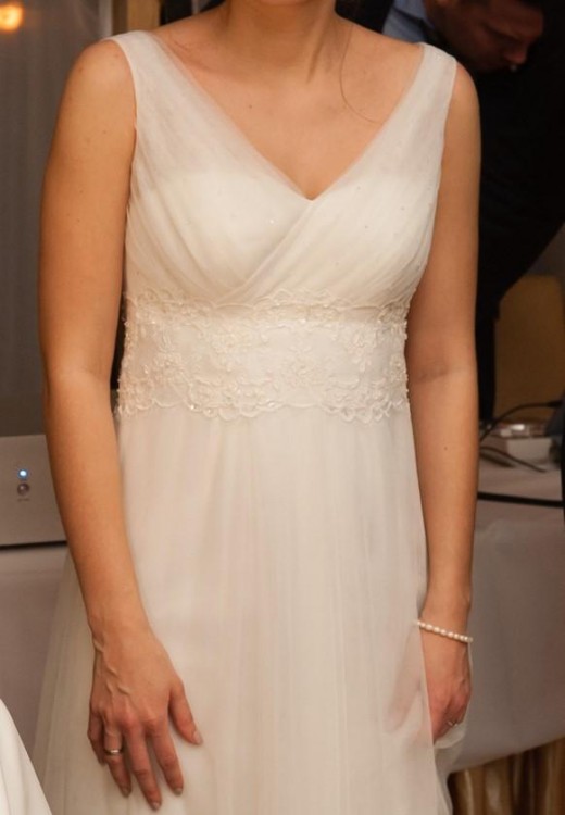 Warszawie ( http://margarett.pl/gallery/hanna/ ). Używana była tylko raz na weselu przez około 8 godzin, odświeżona w pralni. Cena w salonie: 2900 zł. Stan bardzo dobry.