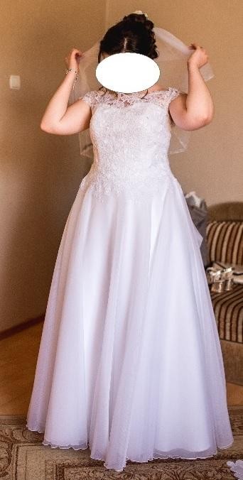 Suknia ślubna Elizabeth Passion, szyta na miarę w salonie, 163+8cm obcas,rozm 40/42, organza,tren