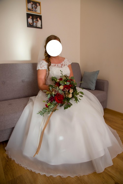 Sprzedam suknię ślubną rozmiar 44-46 , szyta na wzrost 169 cm + obcas 8 cm , zakupiona w październiku 2018 r.w salonie Elizabeth Passion w Koninie , model E-3390T , góra pięknie zdobiona , kolor ecru, rękaw hiszpański , materiał wierzchni organtyna , tył przepiekny koronkowy zapinany na guziczki, bardzo ładnie układa się w tańcu . Fason wyszczuplający . Gratis halka . Wyczyszczona chemicznie . Zapraszam do kontaktu telefonicznego .