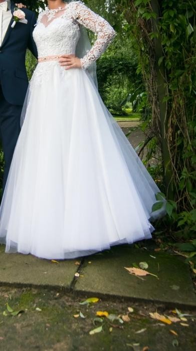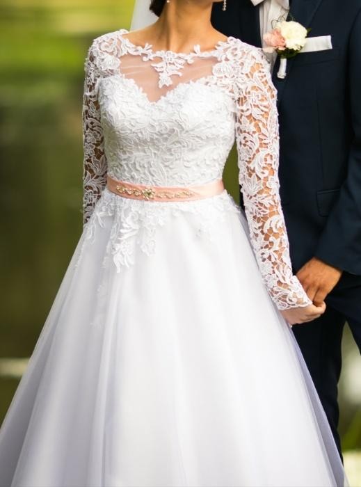 Sprzedam prześliczną suknię ślubną projektu Emmi Mariage. Suknia jest w bardzo dobrym stanie, nie posiada żadnych uszkodzeń. Góra sukni jest wykonana z wysokiej jakości gipury, a tył jest zapinany na guziczki. Szyta na miarę rozmiar 34/36 wzrost 159cm + obcas 8cm, na jednym kole. Do sukni dorzucam welon, który również jest w idealnym stanie. Zapraszam do kontaktu w wiadomości prywatnej lub pod numerem telefonu. Na prośbę mogę przesłać więcej zdjęć:)