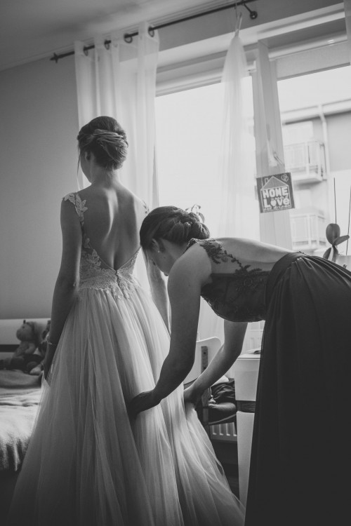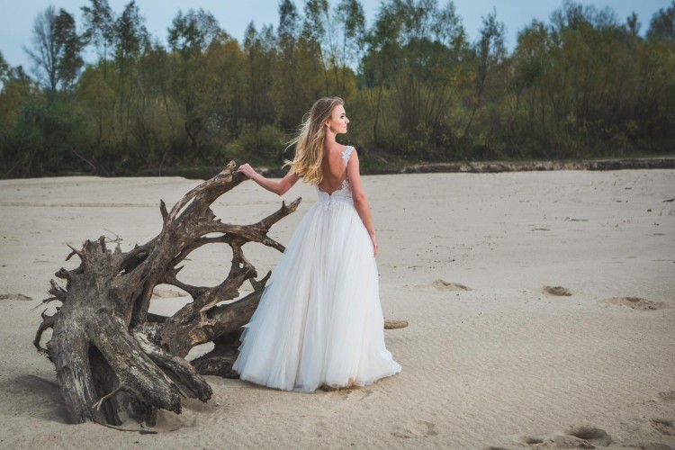 Suknia jest wyjątkowa- delikatna dzięki koronce i pięknemu zwiewnemu, lekkiemu dołowi a zarówno seksowna ze względu na dekolt na plecach oraz wzięcie w biuście.