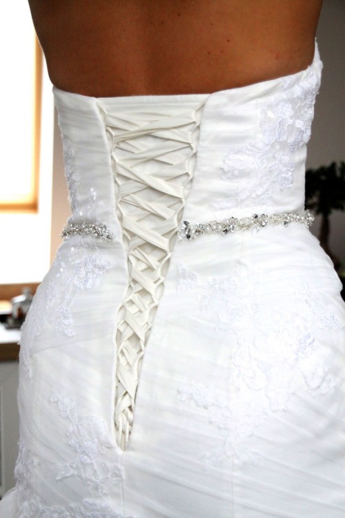 Sukienka ma sznurowany gorset wiec można regulować jej rozmiar.